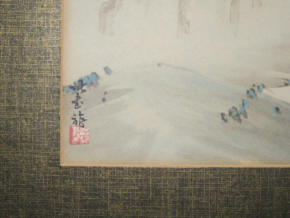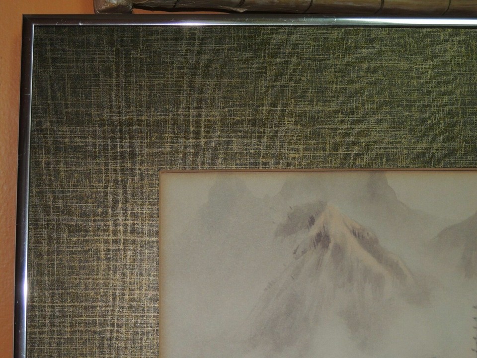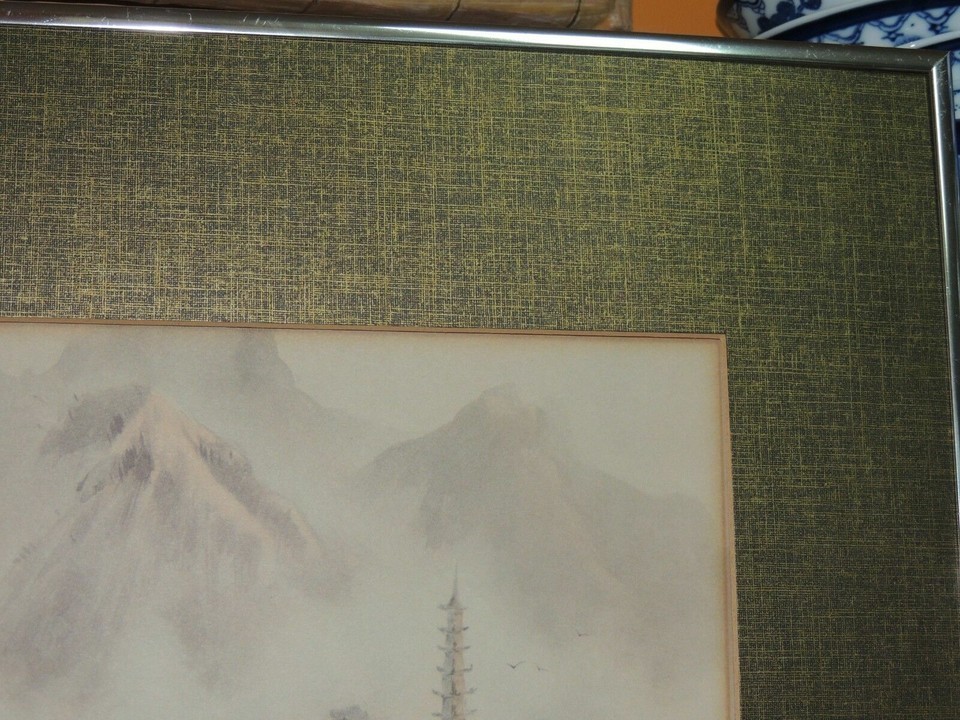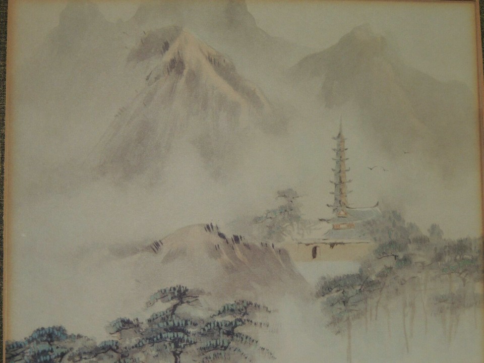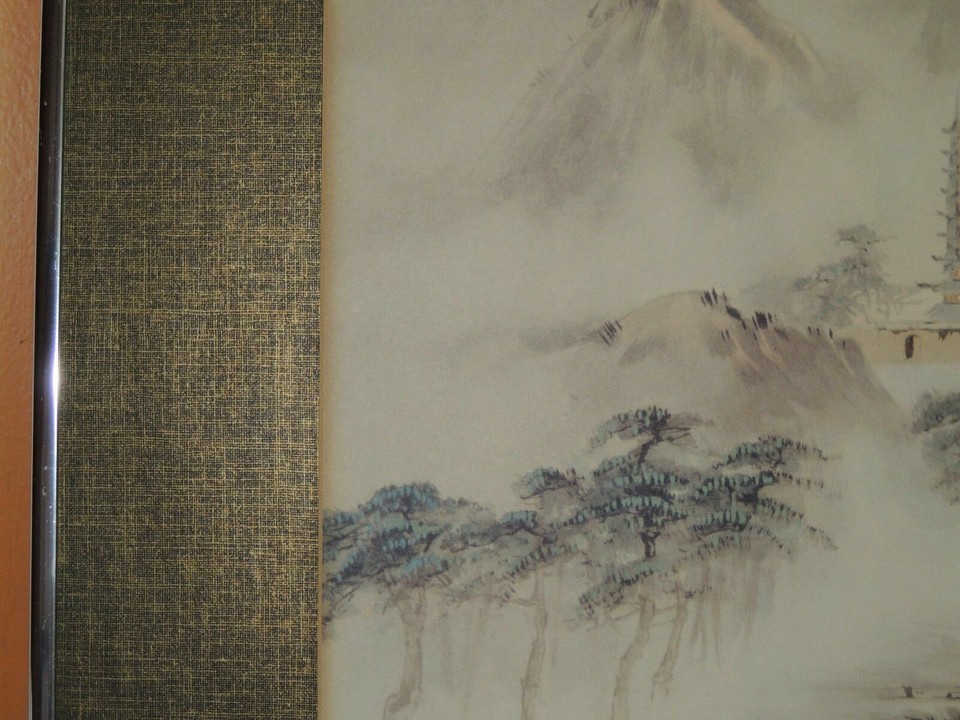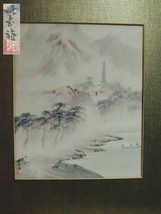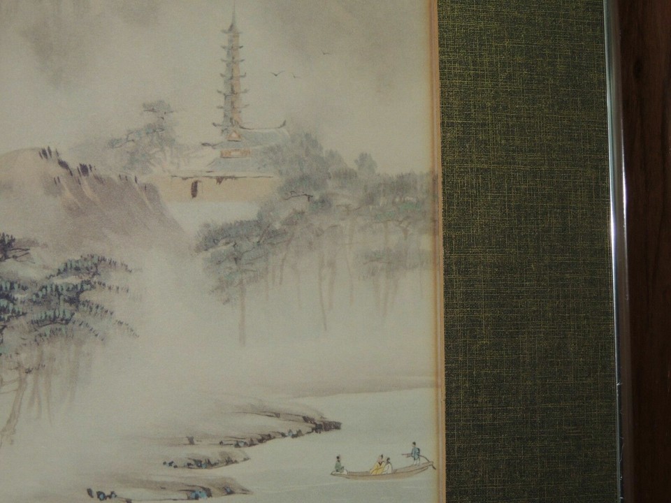 Vintage Chinese Print 12"x14" mountains river boat Watercolor Water Color Art