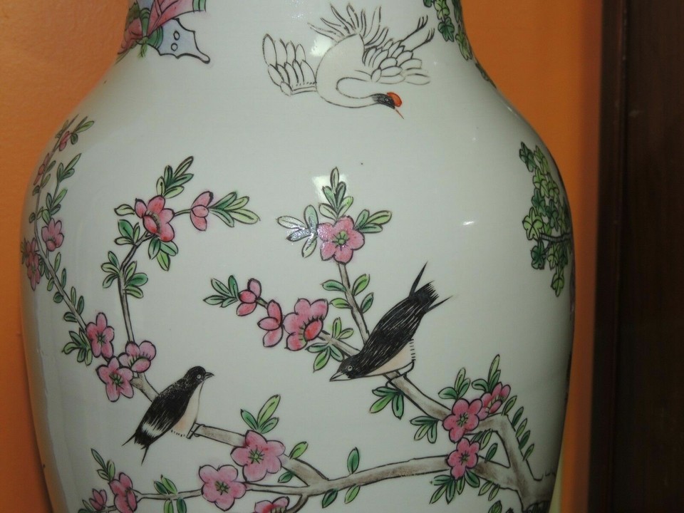 ONE LARGE VASE. I AM NOT AN EXPERT, BUT I BELIEVE THIS IS LATE 19th EARLY 20th CENTURY. THE MARK MIGHT BE TONGZHI PERIOD MAKE. YOU ARE THE EXPERT - PLEASE LOOK AT THE PICTURES CAREFULLY. AS OF THE TIME OF LISTING (10/23/2018) I HAVE TWO OF THESE AS SHOWN IN THE LAST PHOTO. I AM LISTING THEM SEPARATELY BECAUSE THEY ARE NOT MIRROR IMAGE VASES AND HAVE VARIATIONS WHICH LEAD ME TO BELIEVE THEY WERE NOT INTENDED TO GO TOGETHER. IF YOU PURCHASE BOTH OF THEM AT THE SAME TIME, I WILL SHIP THEM TOGETHER AND PASS ON ANY SAVINGS IN SHIPPING COST.