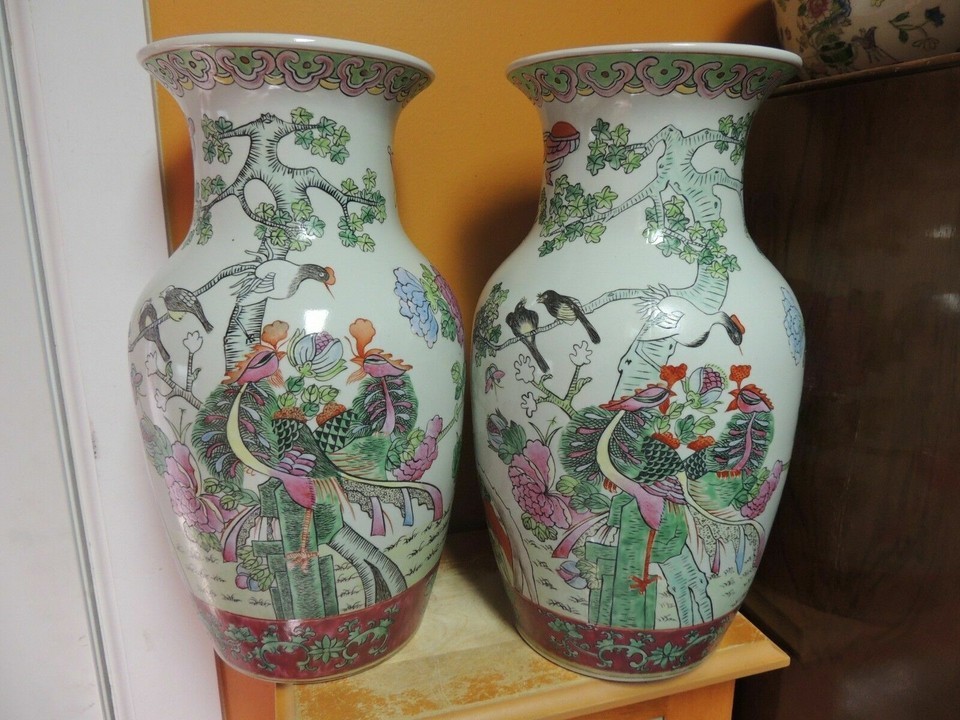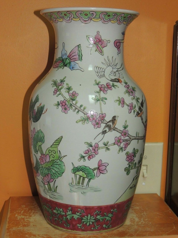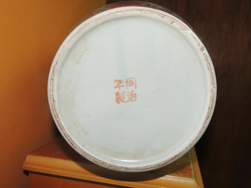 ONE LARGE VASE. I AM NOT AN EXPERT, BUT I BELIEVE THIS IS LATE 19th EARLY 20th CENTURY. THE MARK MIGHT BE TONGZHI PERIOD MAKE. YOU ARE THE EXPERT - PLEASE LOOK AT THE PICTURES CAREFULLY. AS OF THE TIME OF LISTING (10/23/2018) I HAVE TWO OF THESE AS SHOWN IN THE LAST PHOTO. I AM LISTING THEM SEPARATELY BECAUSE THEY ARE NOT MIRROR IMAGE VASES AND HAVE VARIATIONS WHICH LEAD ME TO BELIEVE THEY WERE NOT INTENDED TO GO TOGETHER. IF YOU PURCHASE BOTH OF THEM AT THE SAME TIME, I WILL SHIP THEM TOGETHER AND PASS ON ANY SAVINGS IN SHIPPING COST.