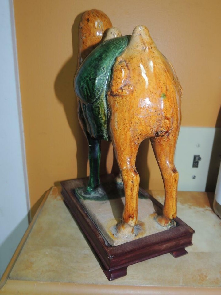 Chinese Mud Camel 11"x8.25" yellow Mudman Mud Man Tang style Sancai wood stand
