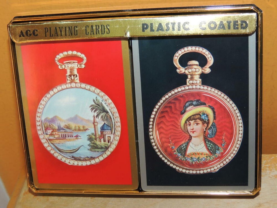 NEW 2 decks AGC Playing Cards vintage lady seascape jewelry made in Hong Kong
