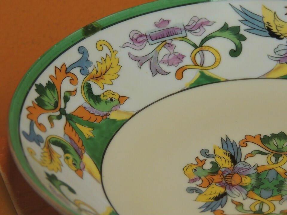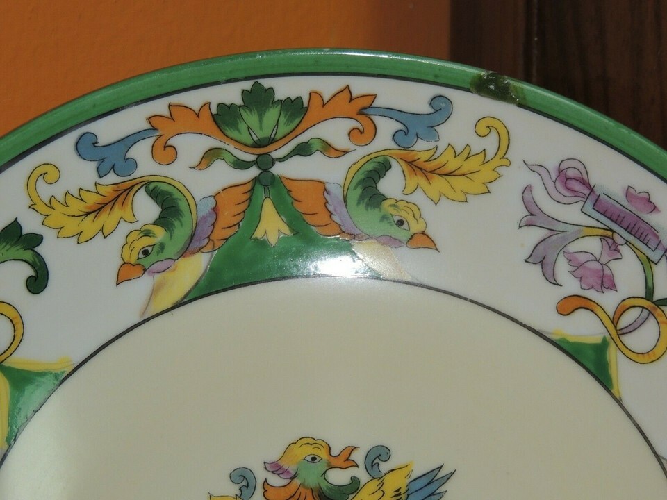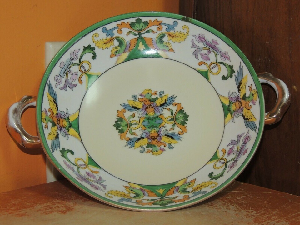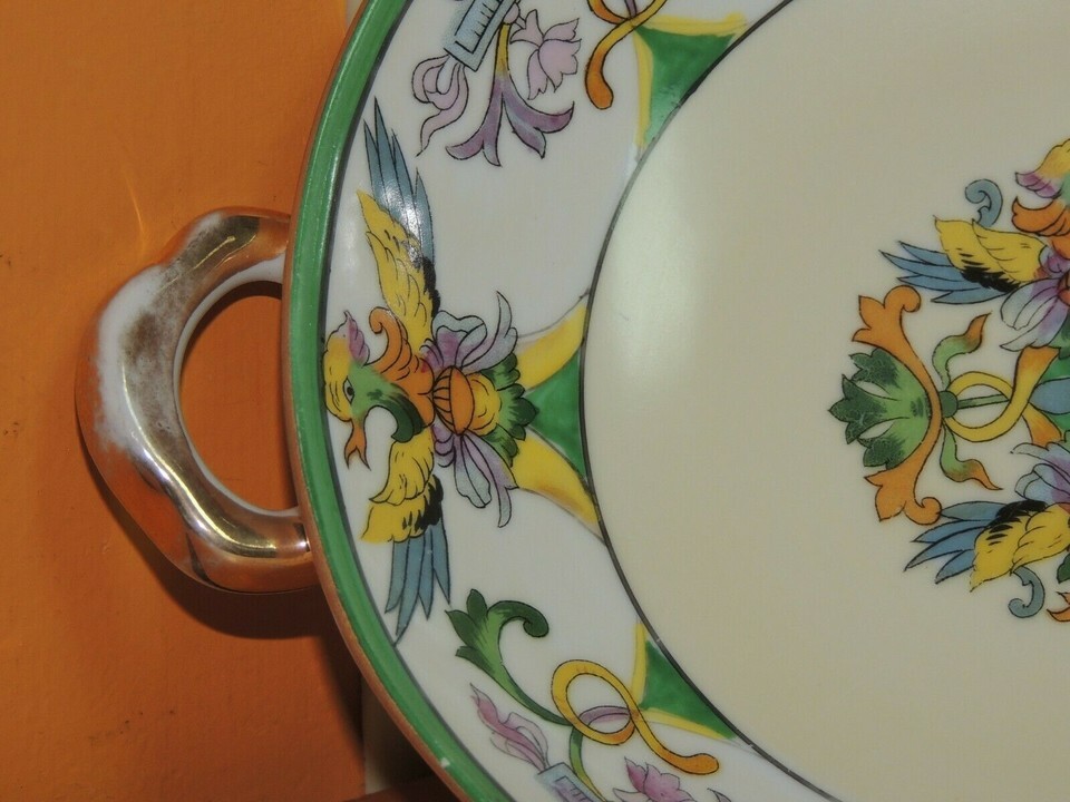 Hand Painted Noritake handled Bowl 6.5" Birds Fish Dish phoenix koi sea creature