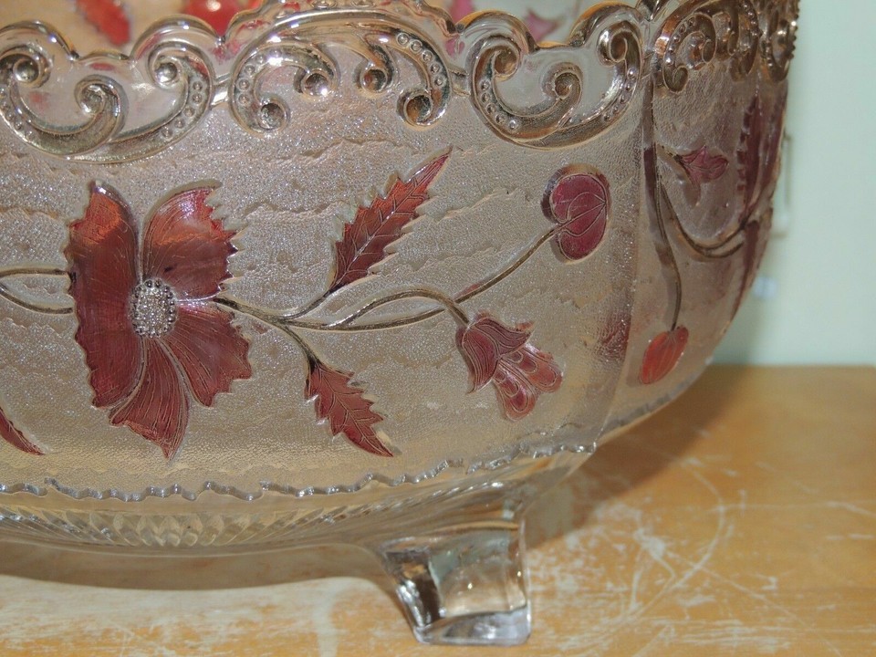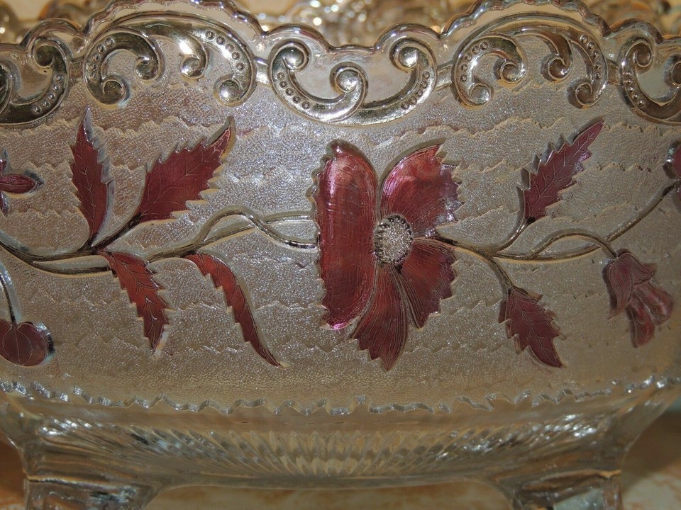 Antique 9.5" EAPG US Glass Flora Dora Bohemian Stain Gold Gilt Bowl Ruby Flash