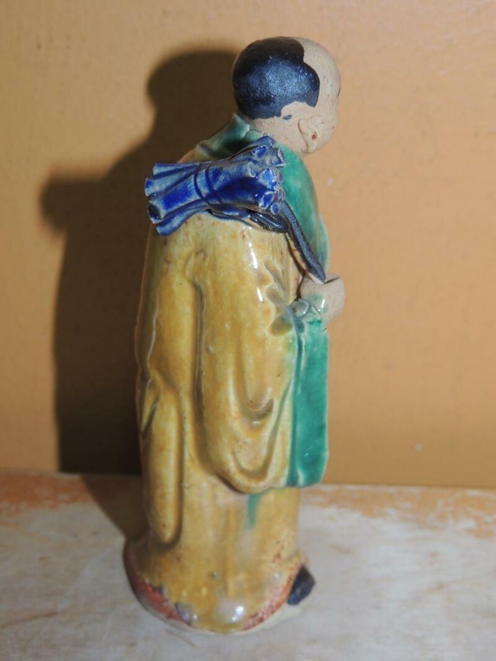Mud Man 4.5"+ yellow green robe firewood Mudman Men Marked China Antique c 1910