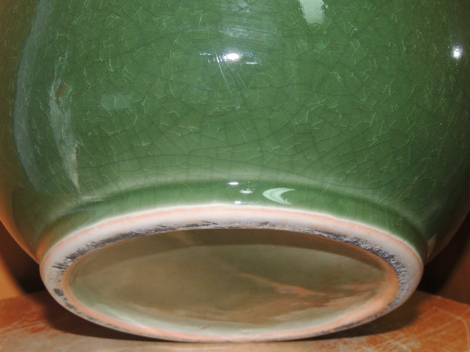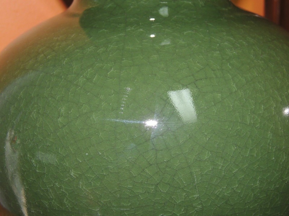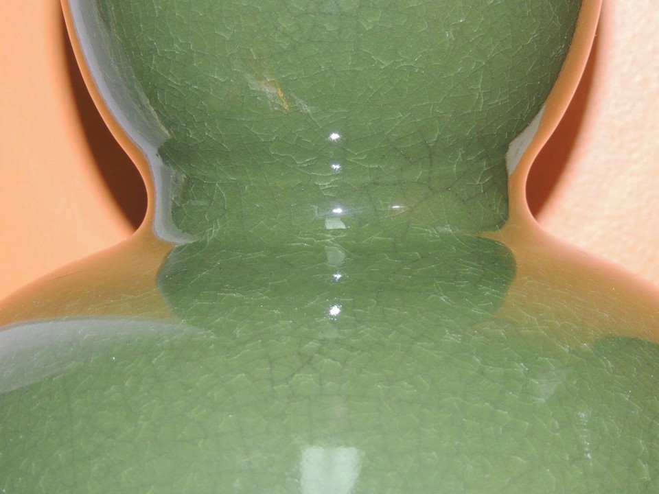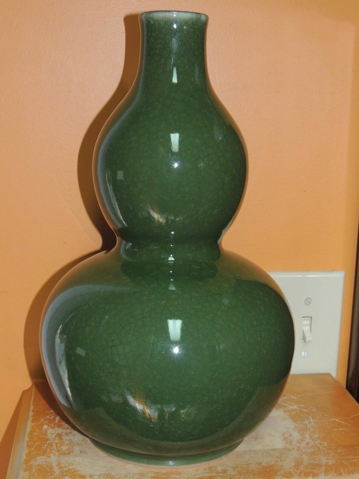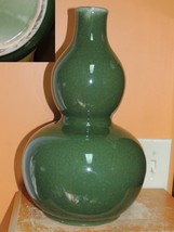 Chinese Guan Crackle Glaze 14" Vase Double Gourd dark Apple Green Qing 19th?