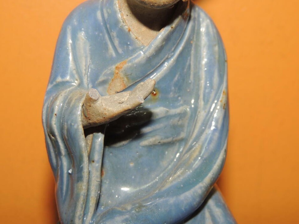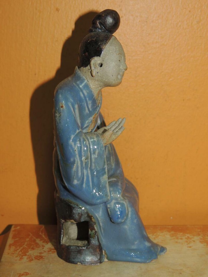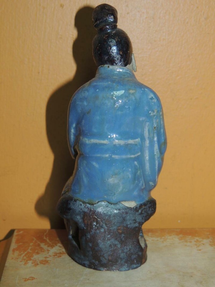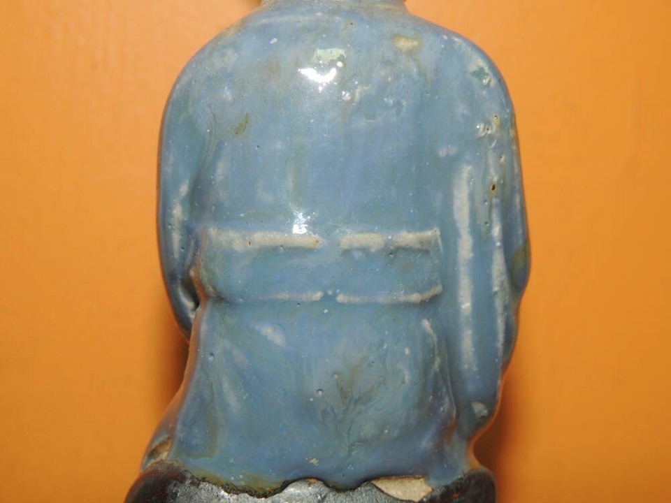 Chinese Mud Man/ Men Blue Robe Woman 5.5"+ drip glaze mark CHINA Mudman Antique