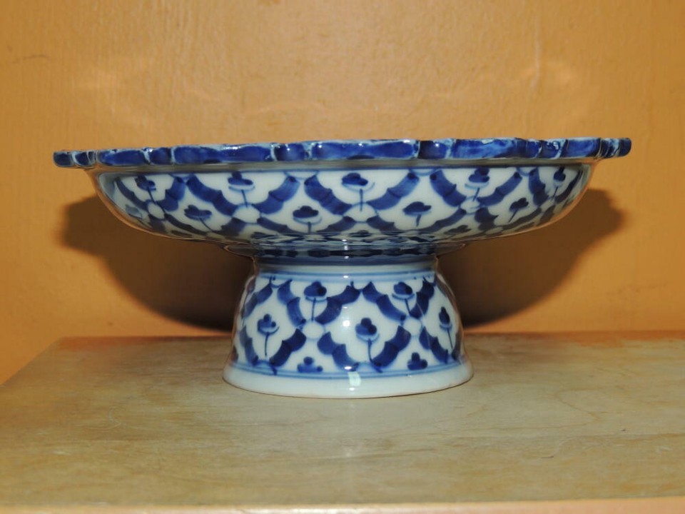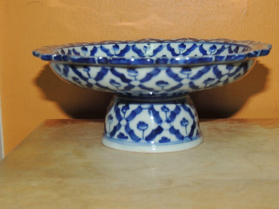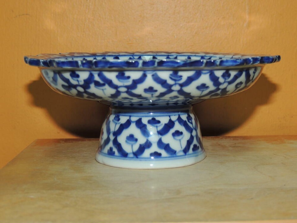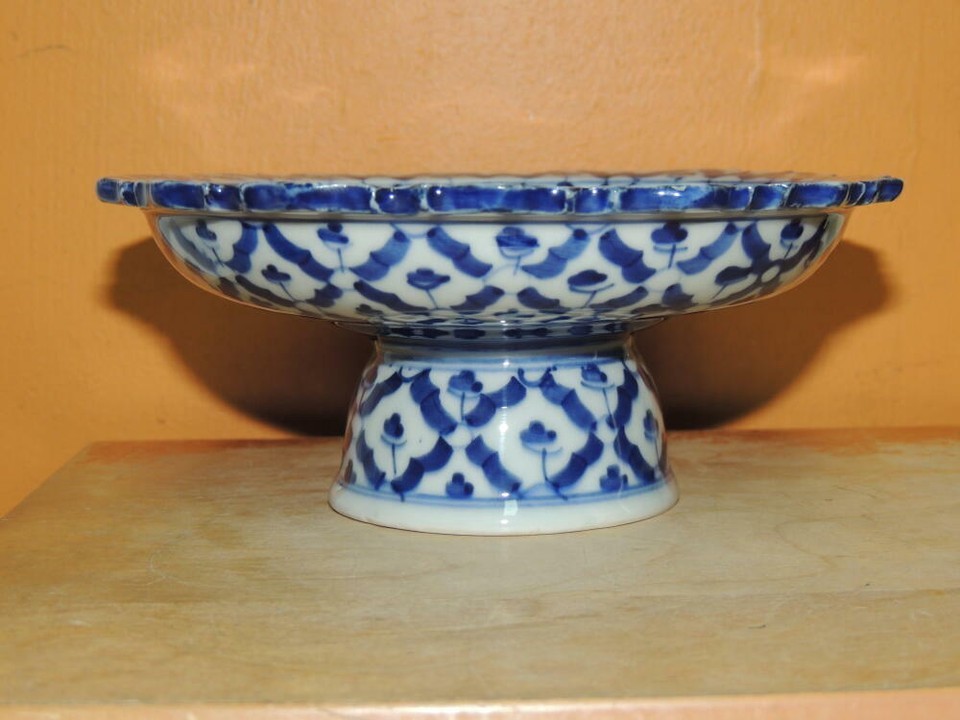 Chinese 5.75" Hand Painted Cup / Tazza Footed Round blue white flower Antique