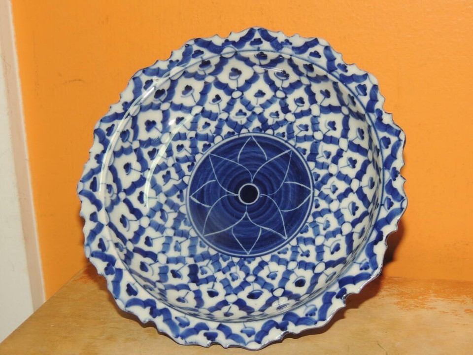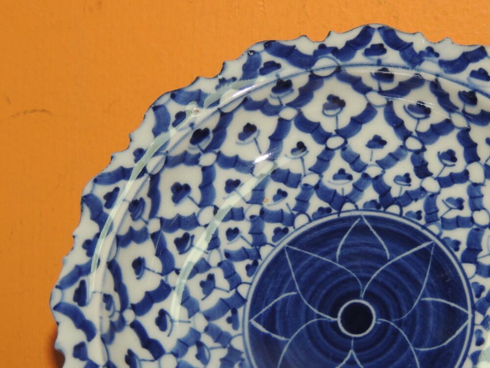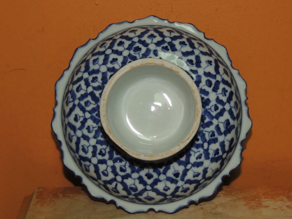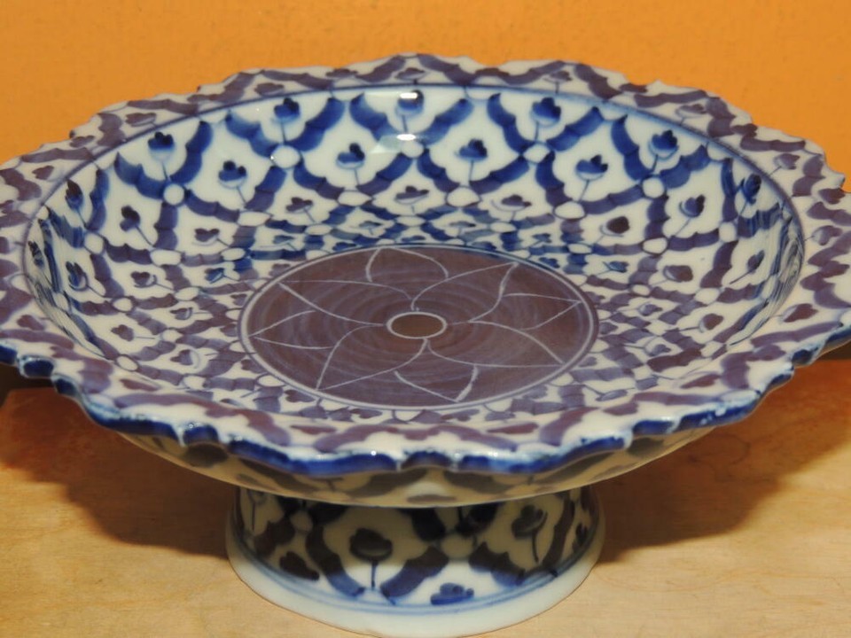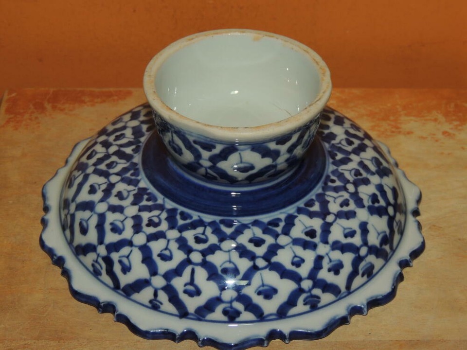 Chinese 5.75" Hand Painted Cup / Tazza Footed Round blue white flower Antique