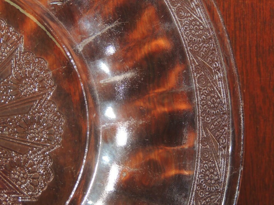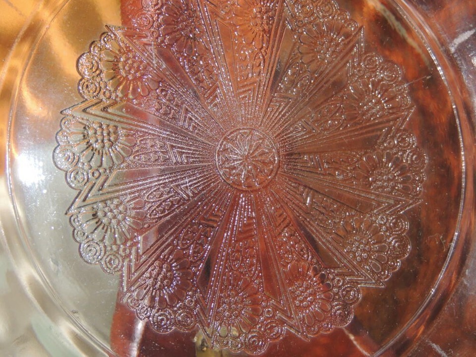 DEPRESSION ERA PLATE. I HAVE LOOKED EVERYWHERE TO FIND THE PATTERN AND HAVE BEEN UNSUCCESSFUL. PLEASE LOOK AT THE PICTURES CAREFULLY.