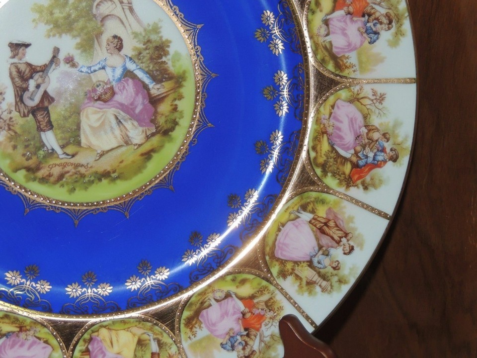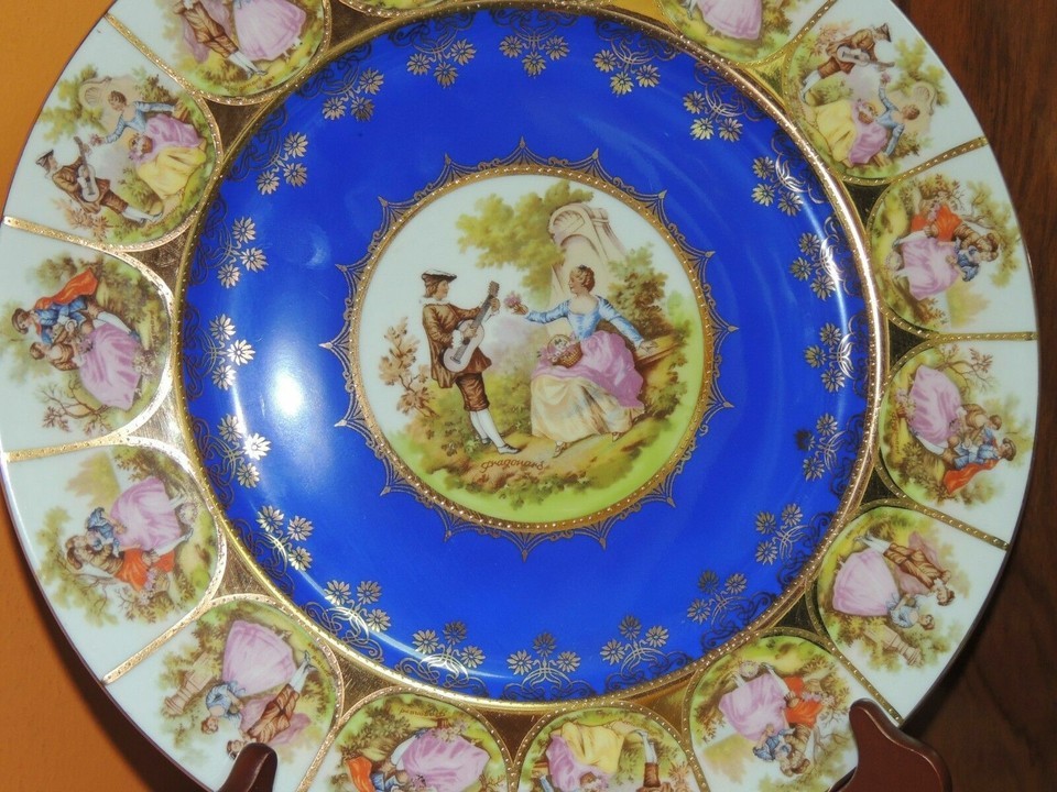 Vintage Fragonard 11" Platter Plate Courting Couple Colbalt Gold Edged German?