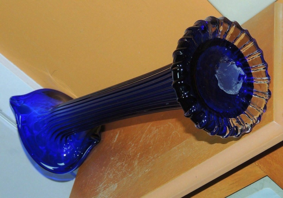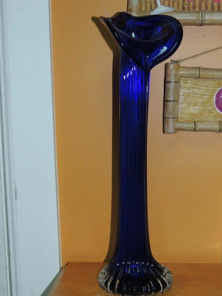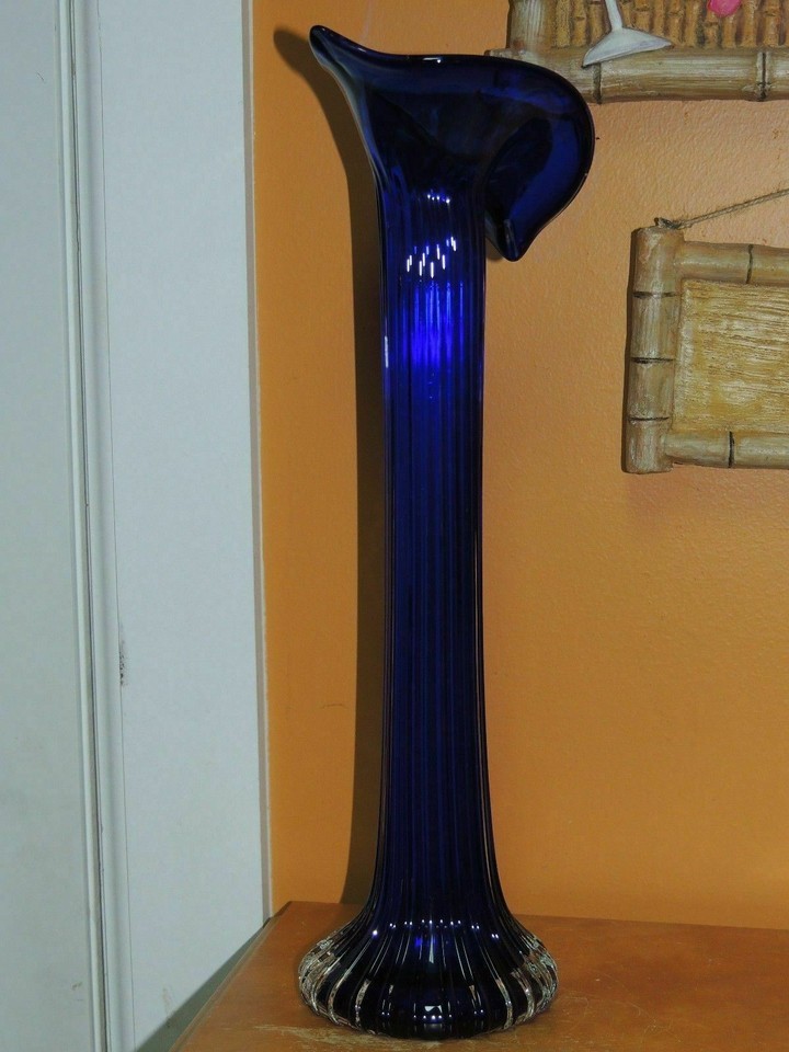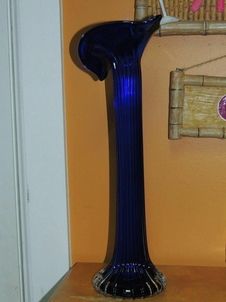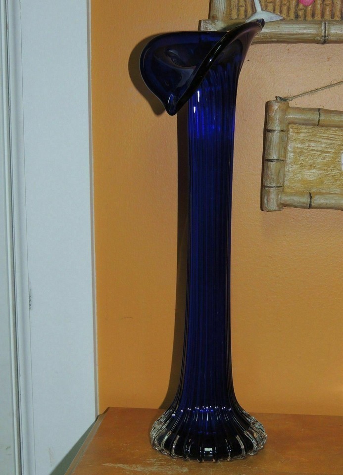 Art Glass Vase 15+" Blue to Clear Ribbed Calla Lily Lilly Jack in the Pulpit