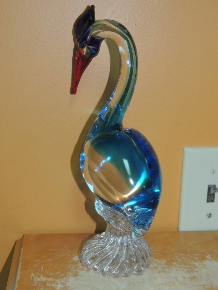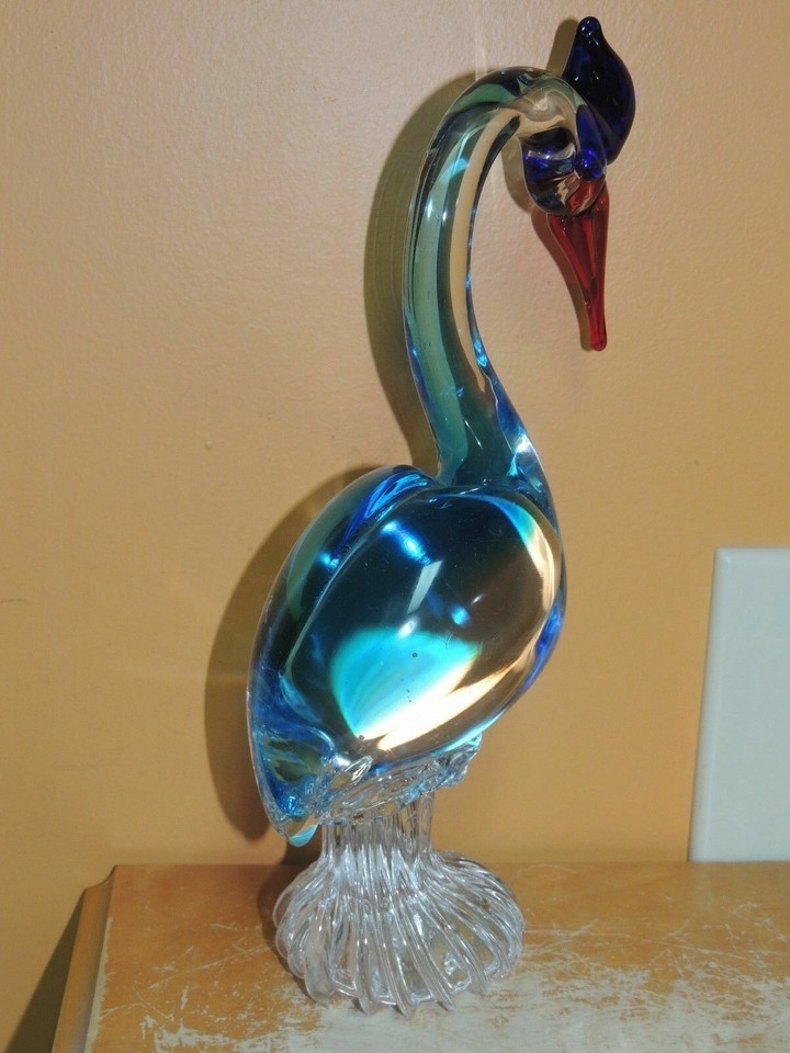 Art Glass Crane / Bird Red & Blue 11" sommerso unmarked Italian Murano