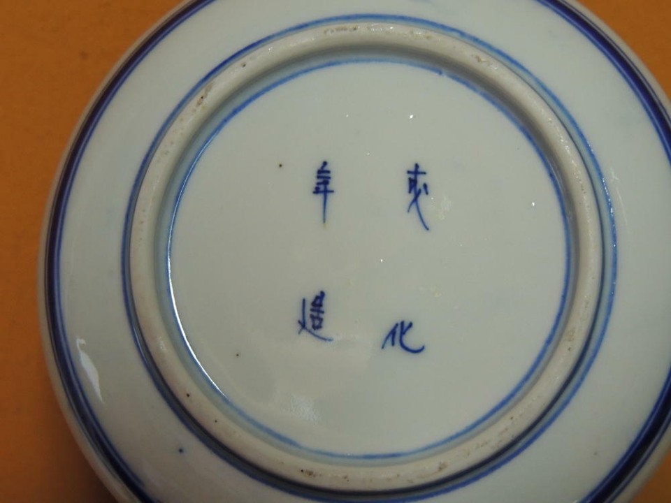 Chinese 4.5" dish underglaze blue w red gold marked Chenghua cobalt small plate