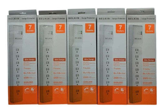 Lot of 5 HP Belkin BE107200-06 7-Outlet 6ft Surge Protector Power Strip AG290AA