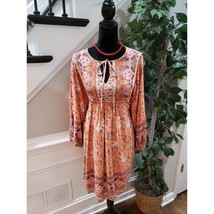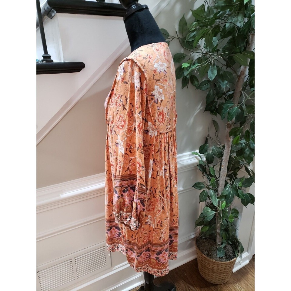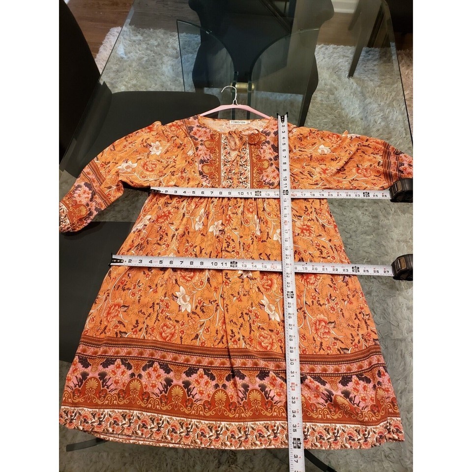 Temofon Women's Multicolor Rayon Keyhole Neck Long Sleeve Knee Length Dress XL