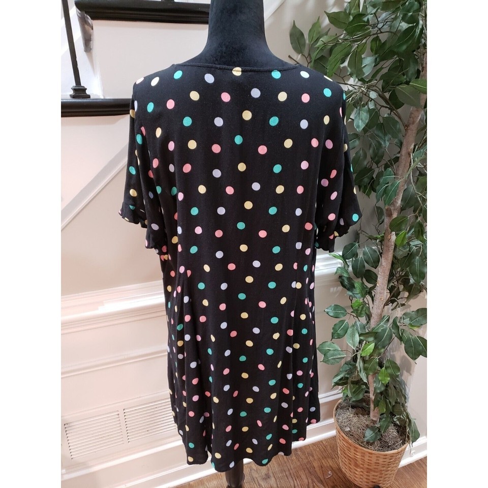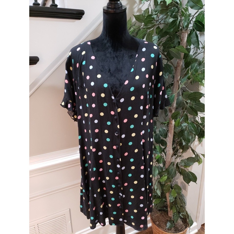 FOREVER 21 Women's Black Polka Dot Rayon Short Sleeve Button Down Shirt Size 2X