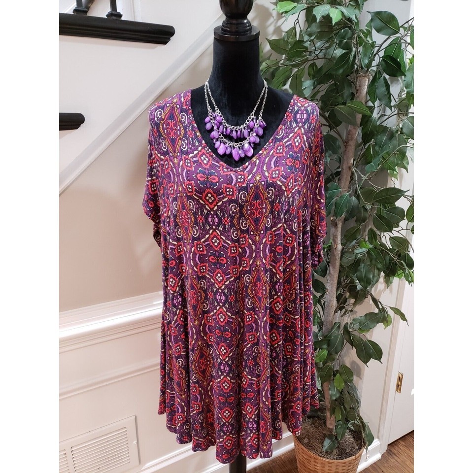 Roaman's Women's Multicolor Floral Rayon V Neck Short Sleeve Top Blouse Size 2X