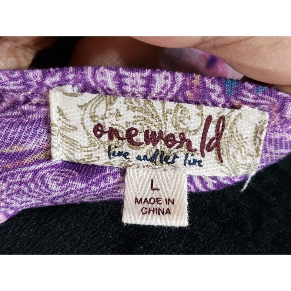 One World Women's Multicolor 100% Polyester Round Neck Short Sleeve Top Blouse L