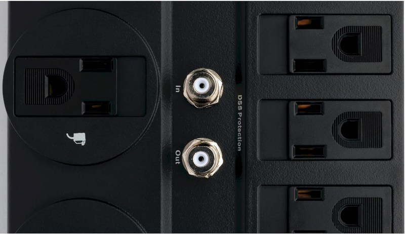 Premium surge protection with built in tel/dsl and gold coax jacks: This surge suppressor offers complete ac protection with twelve total nema 5 15r outlets, while built in RJ11 and 22GHertz gold coax jacks prevent surges from damaging your modem, phone, cable and satellite equipment 6 feet telephone cable is included