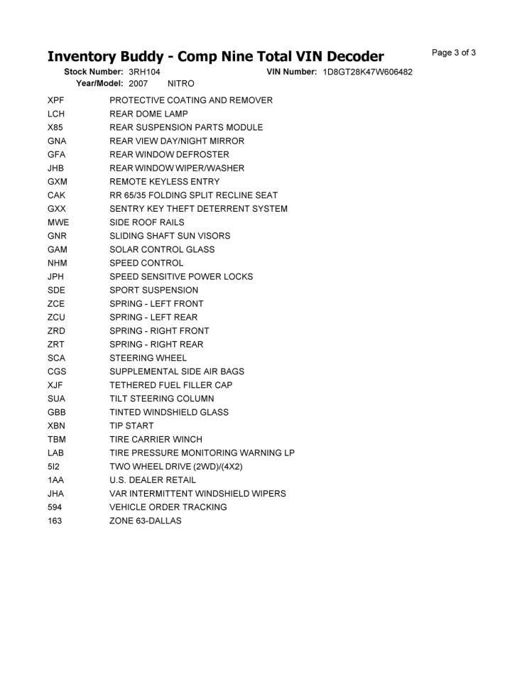 NITRO 2007 Spare Wheel Carrier 104910974Spare tire hoist/carrier only, no...