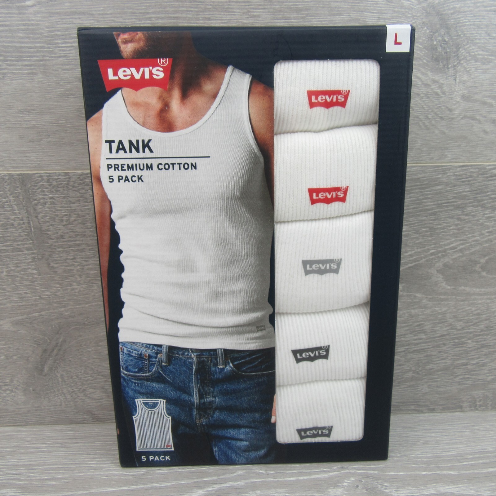 Levi’s Premium Cotton Tank Top Men's Size Large 5 Pack White NEW 6HMTK501