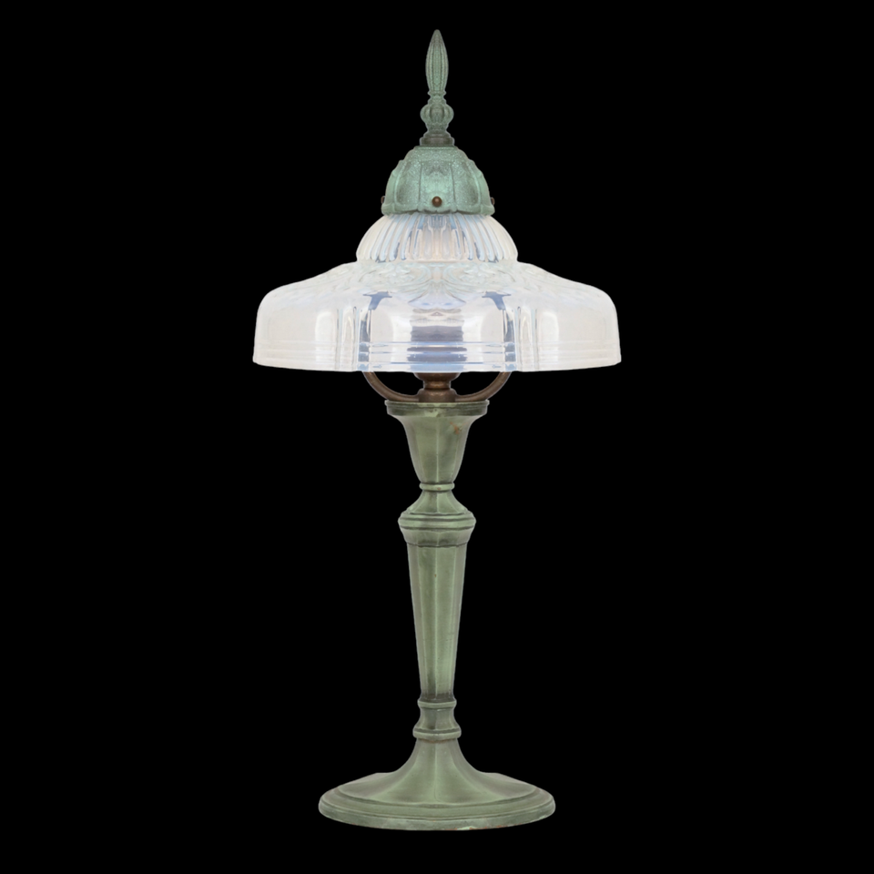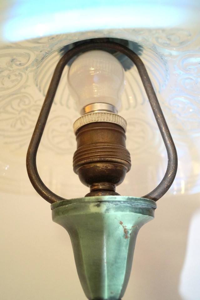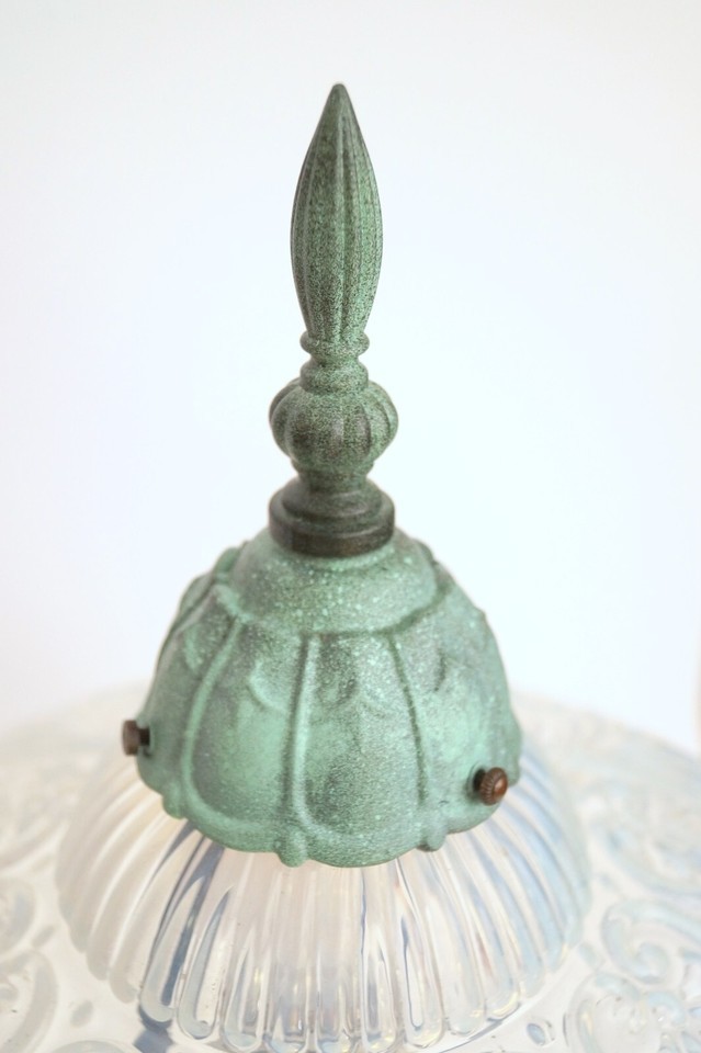 Important: We recommend using only LED lamps (filament bul!) For each of our lights. In addition to that of up to 12 times higher efficiency, the very low heat development of an LED bulb ensures the lifespan of the electrical system and the precious original glasses of its lamp. LED lamps available everywhere or here . Also suitable for LED/energy-saving bulbs with higher light output. Sale without decoration and lamp! Further Art Nouveau lights in our shop.