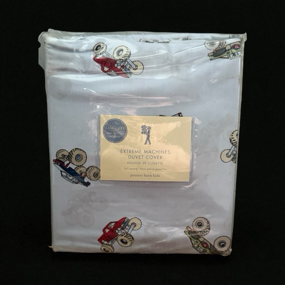 VTG POTTERY BARN KIDS EXTREME MACHINES MONSTER TRUCKS FULL/QUEEN DUVET COVER