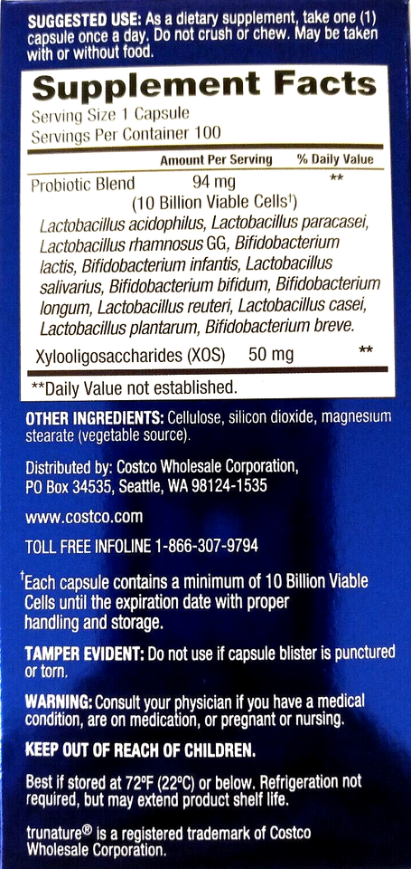 Trunature Advanced Digestive Probiotic (10 Billion cells) 100 Caps EXP 10/2026
