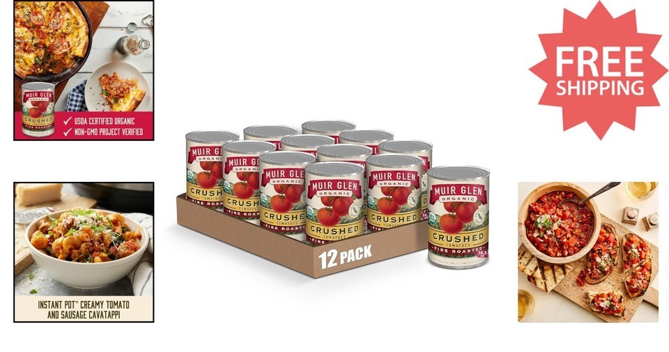 Discover the rich, smoky flavor of Muir Glen Crushed Fire-Roasted Tomatoes, made with USDA Certified Organic and Non-GMO Project Verified tomatoes grown in California. These 14.5 oz cans are a versatile pantry staple, perfect for enhancing soups, sauces, and stews with wholesome ingredients free from cholesterol and gluten. Harvested at their peak and lightly seasoned with sea salt, they provide an easy way to elevate your favorite recipes with natural, farm-fresh flavor. Keep a pack in your pantry for quick, delicious meal upgrades.