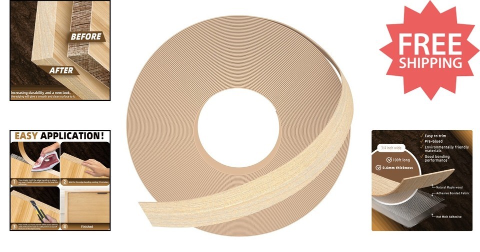 High-Quality Maple Edge Banding 3/4" x 100ft Pre-Glued - Ideal for DIY Furniture