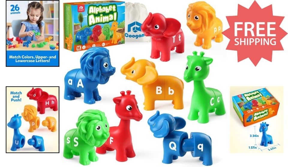 Introduce your child to early literacy with the Coogam Animal Alphabet Matching Set. Featuring 26 vibrant animals, each displaying a pair of uppercase and lowercase letters, this engaging educational toy promotes letter recognition, color sorting, and fine motor skills. Designed with easy-grip, double-sided pieces and a portable draw-string bag, it's perfect for both classroom and homeschooling environments. Crafted from safe, durable materials with a smooth finish, it ensures long-lasting play and learning. An ideal gift for birthdays, holidays, or as a learning aid, this set makes education playful and accessible.