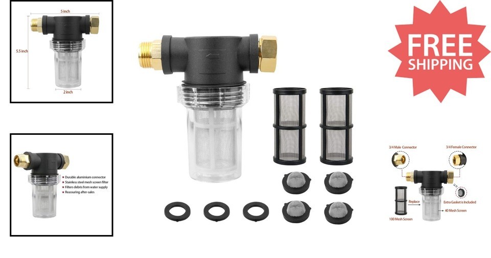 Enhance your gardening experience with our Garden Hose Inlet Filter, designed for compatibility with 3/4 inch fittings and featuring a durable 40 mesh screen. The comprehensive kit includes an inline hose filter, two extra 100 mesh screens for replacement, and essential washers to ensure a secure fit. Its scientific design with alternating mesh screens extends the lifespan of your pressure pump by effectively filtering out debris. Easy to install, this filter protects your equipment from water deposits and debris, maintaining optimal performance. Quality reassurance is backed by our dedicated customer support team. To ensure fast and reliable delivery, we work with multiple fulfillment partners and suppliers. Depending on availability and location, your order may ship from different warehouses or arrive in packaging that varies from item to item. Tracking details are typically provided shortly after shipment, and customer satisfaction remains our top priority. Please note that due to carrier policies and regional regulations, certain items may not be eligible for delivery to specific states or territories.