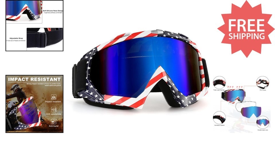Adjustable Motocross Goggles for Men, Women & Youth - Clear Lens Safety
