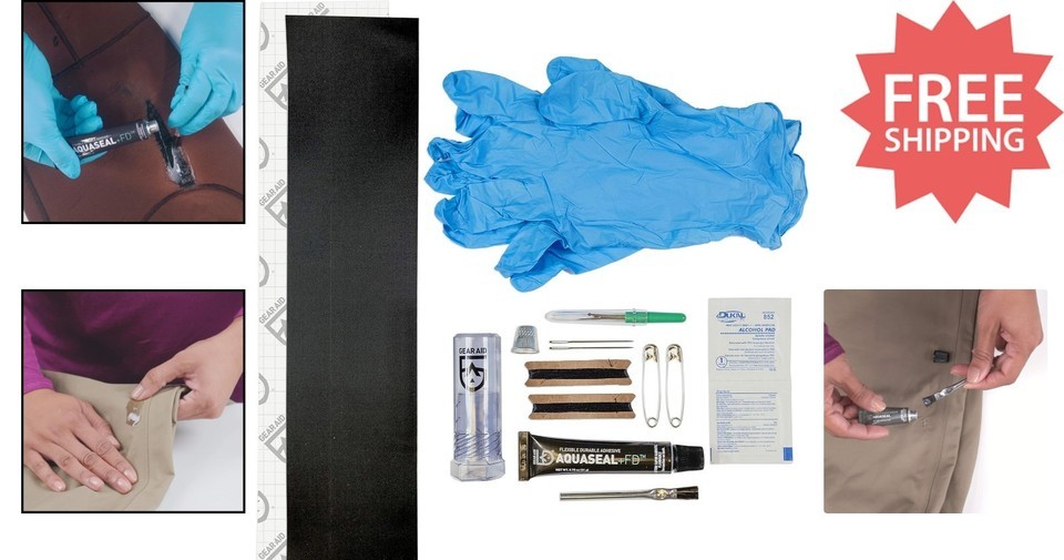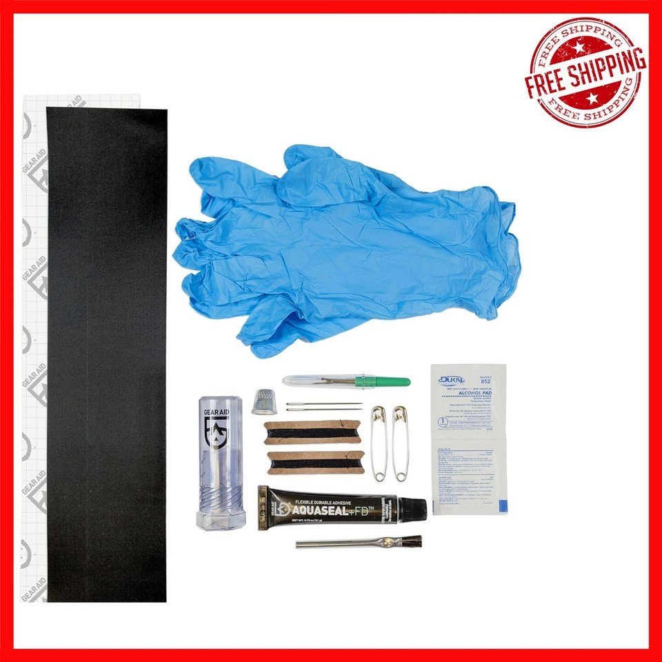 Items Included: Gloves,Aquaseal FD,Tenacious Tape,Brushes,Sewing Tools,Heavy-Duty Sewing Needles,Thimble,Seam Ripper