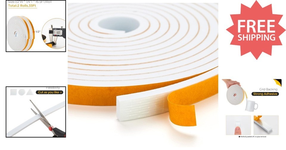 Enhance your home?s energy efficiency with our durable door sealers for the bottom of doors. Crafted from high-quality CR foam and neoprene, these weather stripping strips provide an excellent seal, increasing comfort and reducing energy costs in winter and summer. Each roll measures 1/2" W x 1/4" T x 16.5 ft, and you receive two rolls totaling 33 ft, easily customizable with the included cutter. Featuring a strong grid adhesive, our foam door seals ensure a secure attachment without peeling or residual glue. Versatile and multi-functional, they are perfect for insulation, impact protection, shock absorption, soundproofing, and weatherproofing applications. To ensure fast and reliable delivery, we work with multiple fulfillment partners and suppliers. Depending on availability and location, your order may ship from different warehouses or arrive in packaging that varies from item to item. Tracking details are typically provided shortly after shipment, and customer satisfaction remains our top priority. Please note that due to carrier policies and regional regulations, certain items may not be eligible for delivery to specific states or territories.