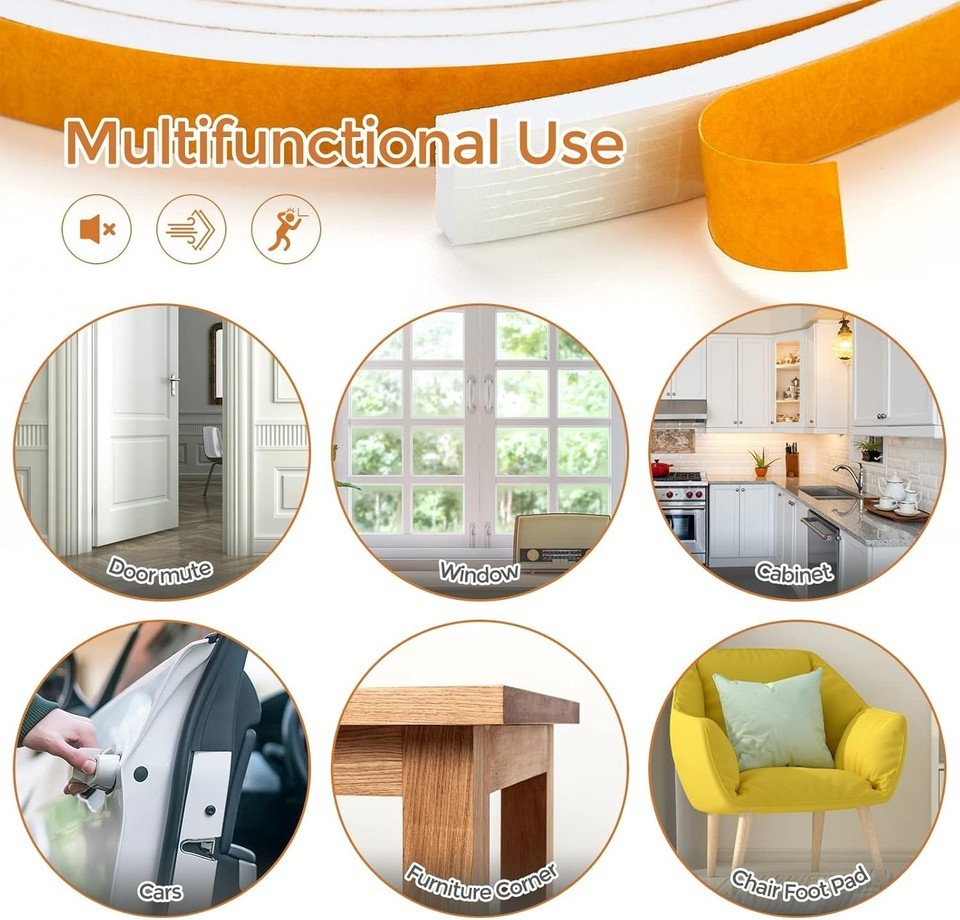 Weather Stripping Door Seal Strip - Durable 33FT Adhesive Foam for Soundproofing