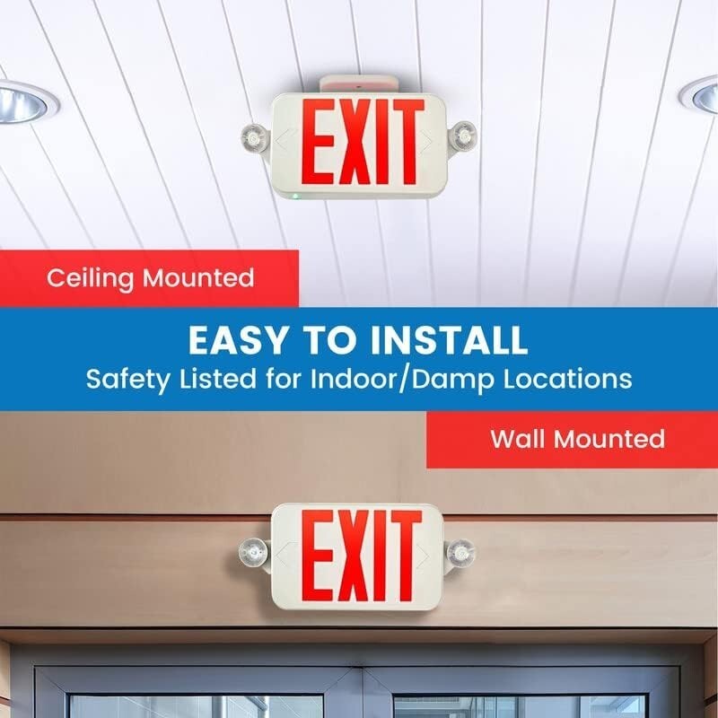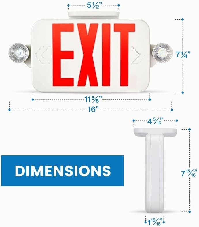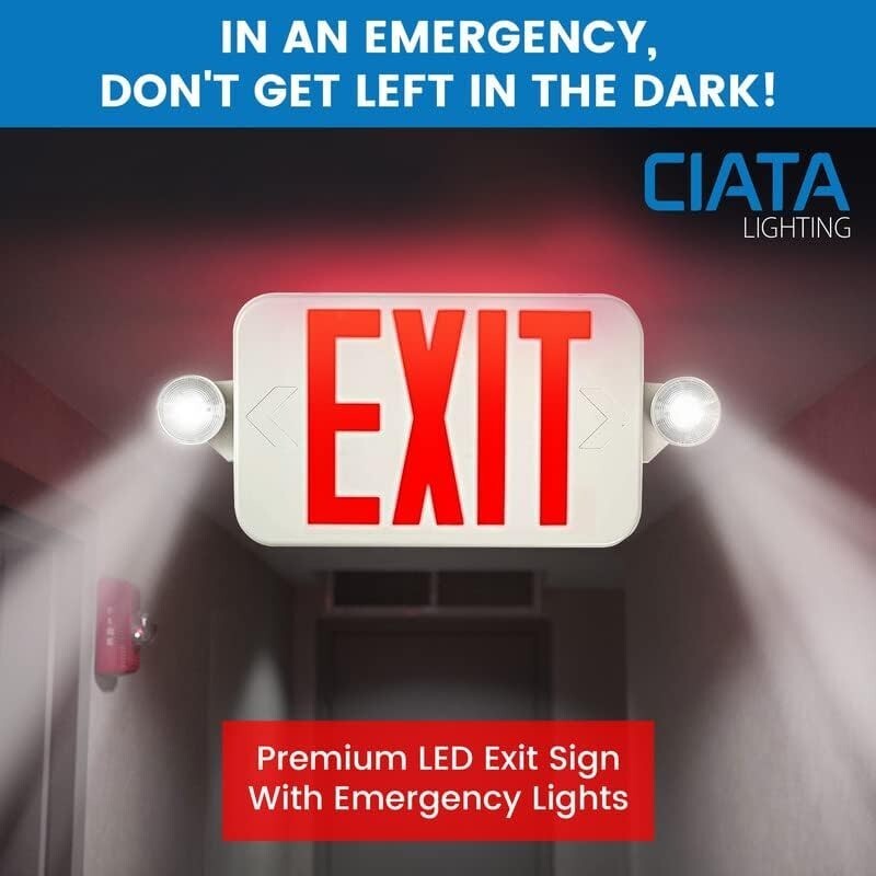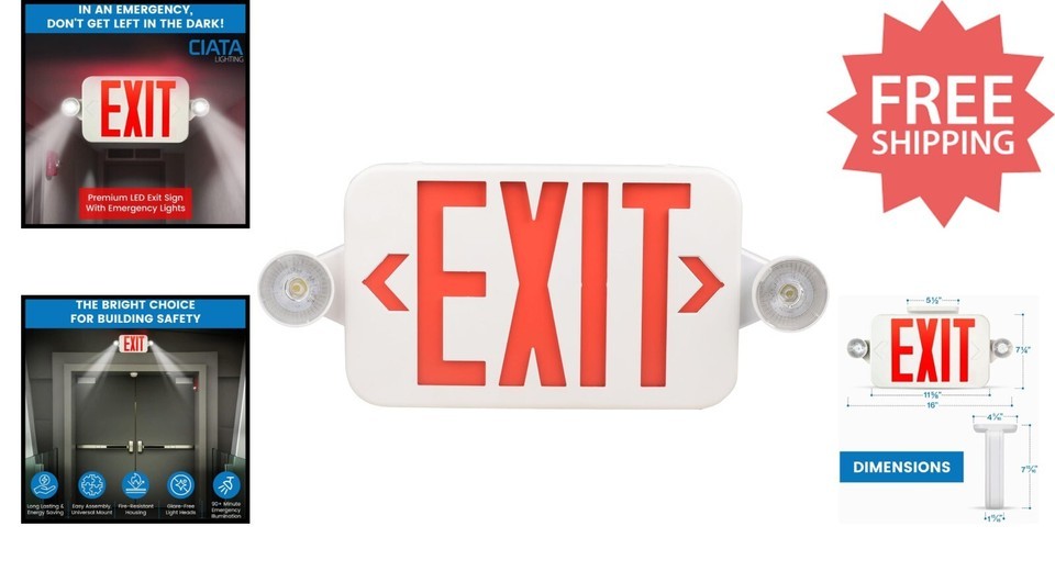 Upgrade your safety measures with the -GRADE Ciata Exit Signs, designed to suit any environment. Featuring a charge indicator LED and a push-to- switch for effortless compliance, these signs are highly visible from up to 100 feet. Perfect for ceiling or wall mounting in commercial or residential spaces?ideal for hallways, hospitals, apartments, stairways, schools, and offices. Equipped with a long-lasting Ni-Cd battery providing at least 90 minutes of emergency lighting, recharging in just 24 hours with a lifespan of 50,000 hours. Easy to install with a quick connect back plate compatible with standard junction boxes, and built with durable, fire-resistant thermoplastic ABS material for added safety. Ensure safety and compliance with Ciata Emergency Exit Signs?reliable, resilient, and ready for any emergency.