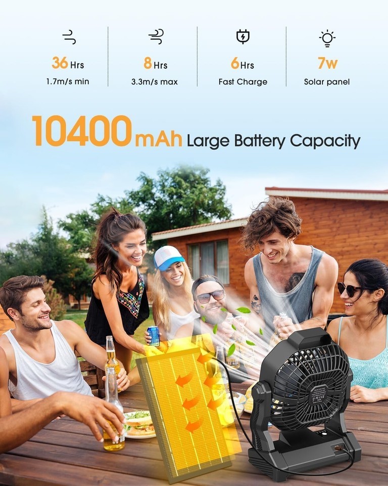 Multi-Function Solar Fan & LED Lantern – Reliable Cooling & Lighting for Camping