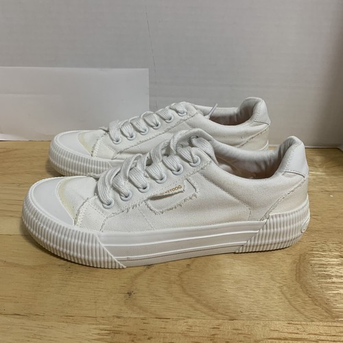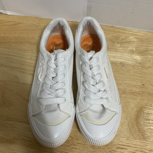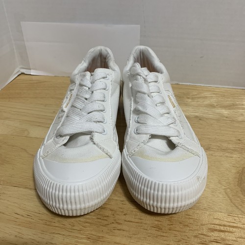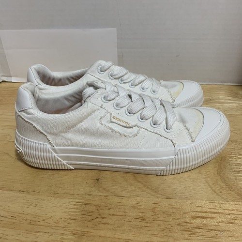 These sneakers come in a white color and have a solid pattern with a Rocketeer character detail. The shoes are available in women's size 7, UK size 5, and EU size 37.5. The Rocket Dog brand is known for its commitment to quality and style, making these shoes a great addition to any wardrobe.