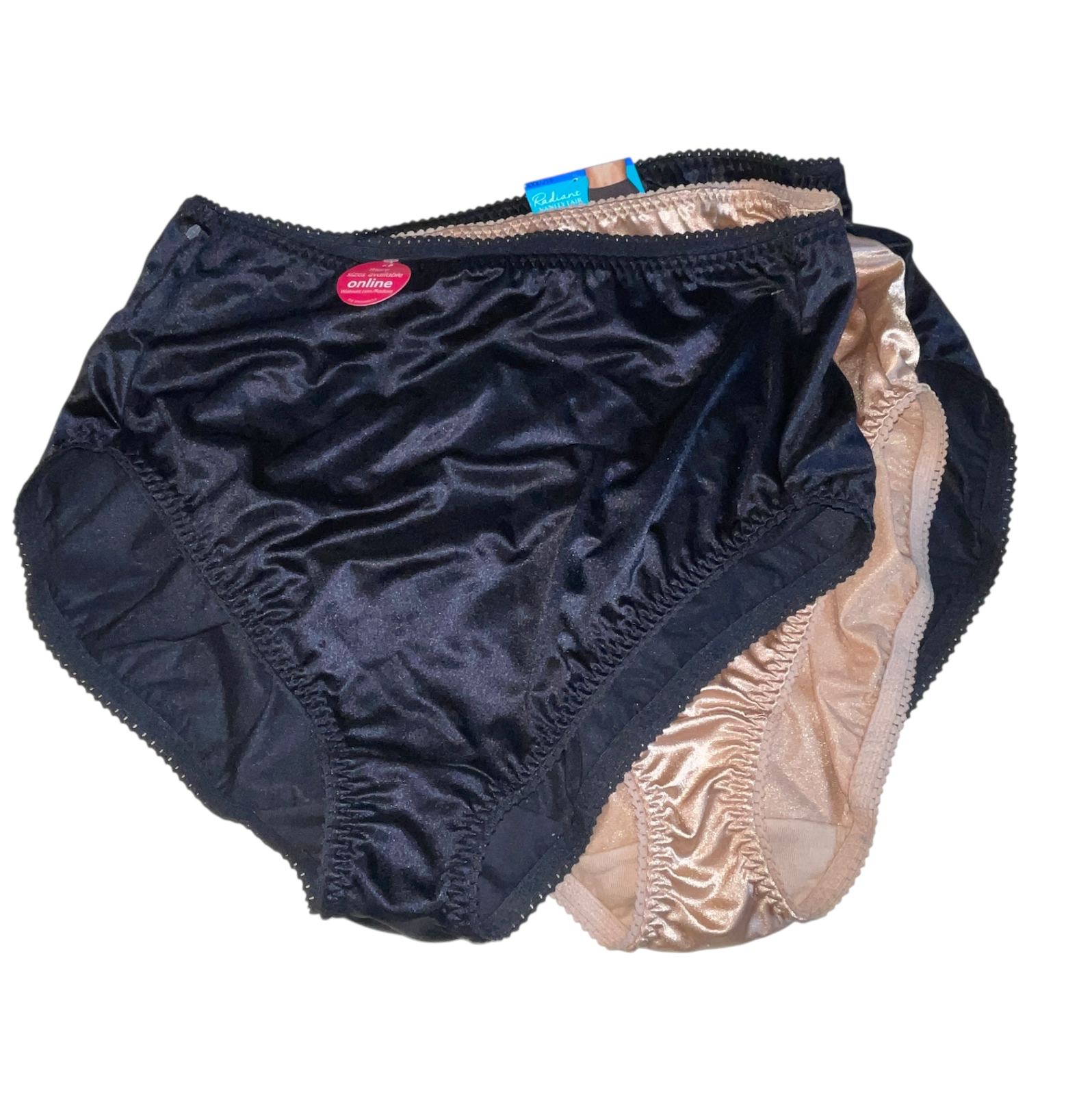 New with tags. 3 pairs (2 black pairs and one beige pair). Size tag XXXL or 10. They have a shiny silky look and feel. Please see all gallery photos. We are a smoke free, pet friendly home. Have a great day!