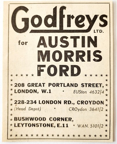1954 Godfreys Austin Morris Ford London Dealer Advertisement Automobilia E89G3