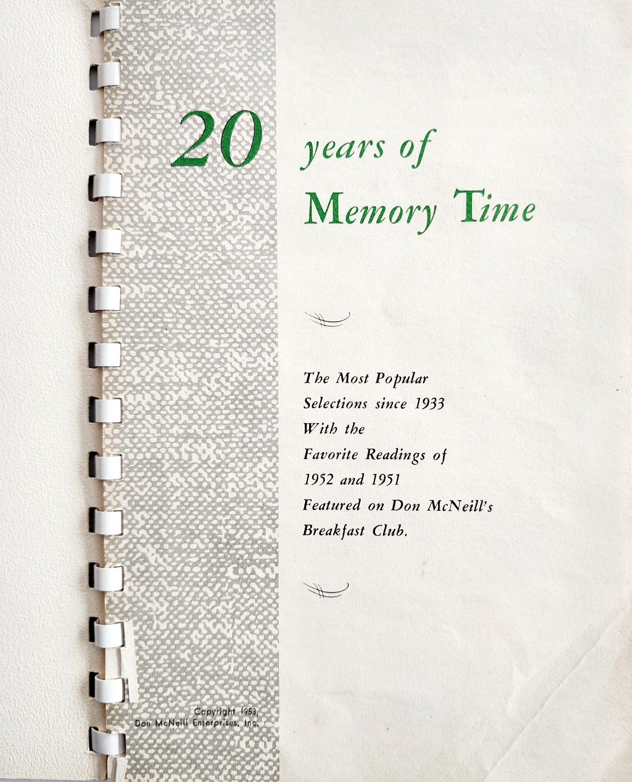 1953 20 Years Of Memory Time Poems Don McNeill Breakfast Club PB Book F1