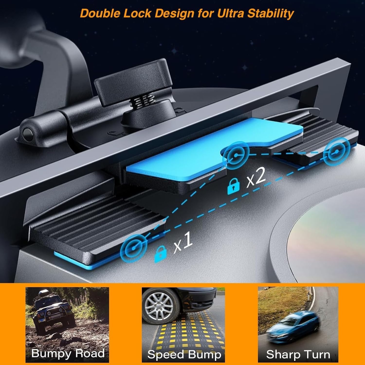 with Shockproof: This car play mount crafted by double lock design with sturdy materials, prevents slipping and shaking, keep your CarPlay monitor stably on car while driving, even on bumpy road/speed bump/sharp turn