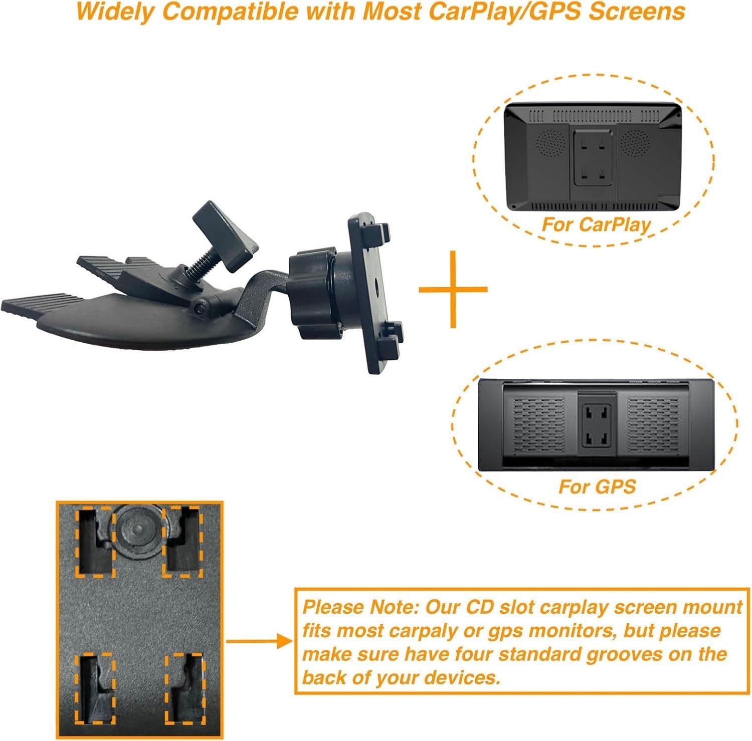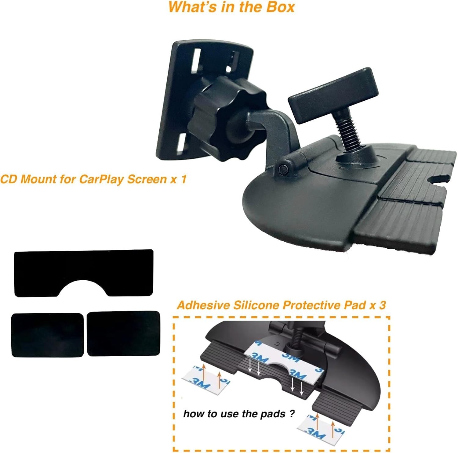 This CarPlay Screen CD mount build in smooth rotating ball allows you to adjust your CarPlay screen to any angle for the best viewing and operating experience. And this CD CarPlay Screen mount is user friendly, easy up and tool free installation