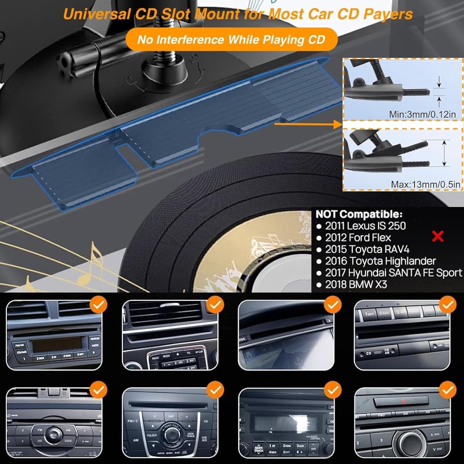 This CarPlay Mount for Car build with solid CD slot mounts fits most cars with CD players and it does not affect CD playback. Please note: Not compatible with 2011 Lexus IS 250, 2012 Ford Flex, 2015 Toyota RAV4, 2016 Toyota