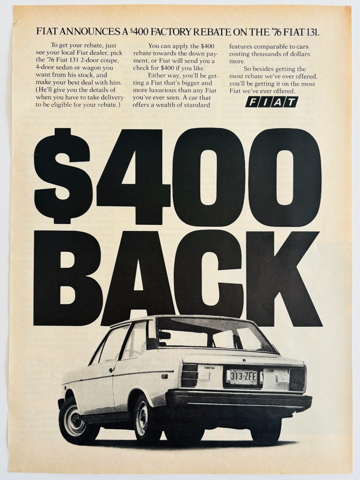 1977 Fiat 1976 131 Rebate Advertisement and 19 similar items