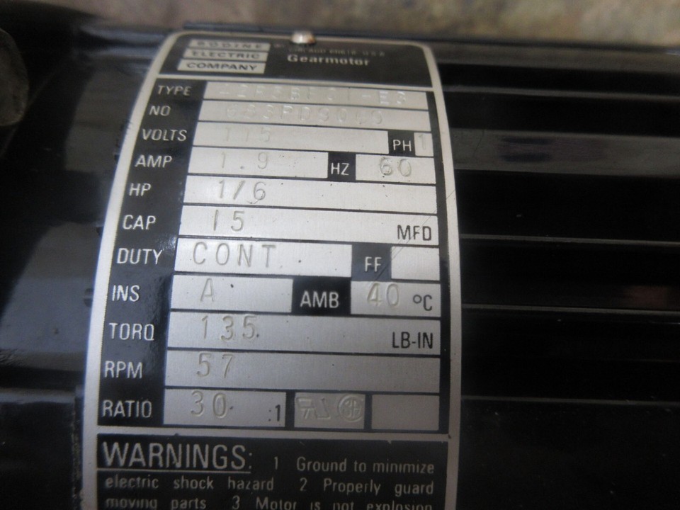 BODINE GEAR MOTOR 42R5BFCI-E3 683PD9069 115V PH1 FADAL VMC15 CNC MILL