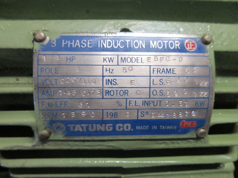 TATUNG INDUCTION MOTOR 1/4 HP MODEL EBFC-D NOP PUMP IRA 3FS YAM CK1 CNC LATHE