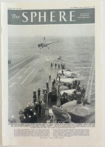 1952 HMS Illustrious Ship To Ship Helicopter UK Sphere Magazine COVER DWBB8