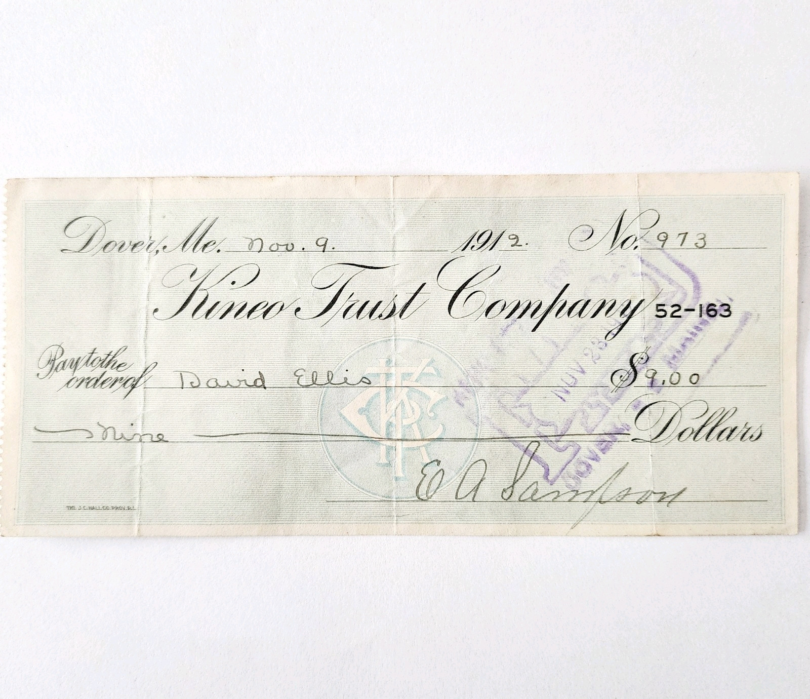 1912 Kineo Trust Company Bank Check E.A. Sampson Dover Maine Signed 973 CHX1